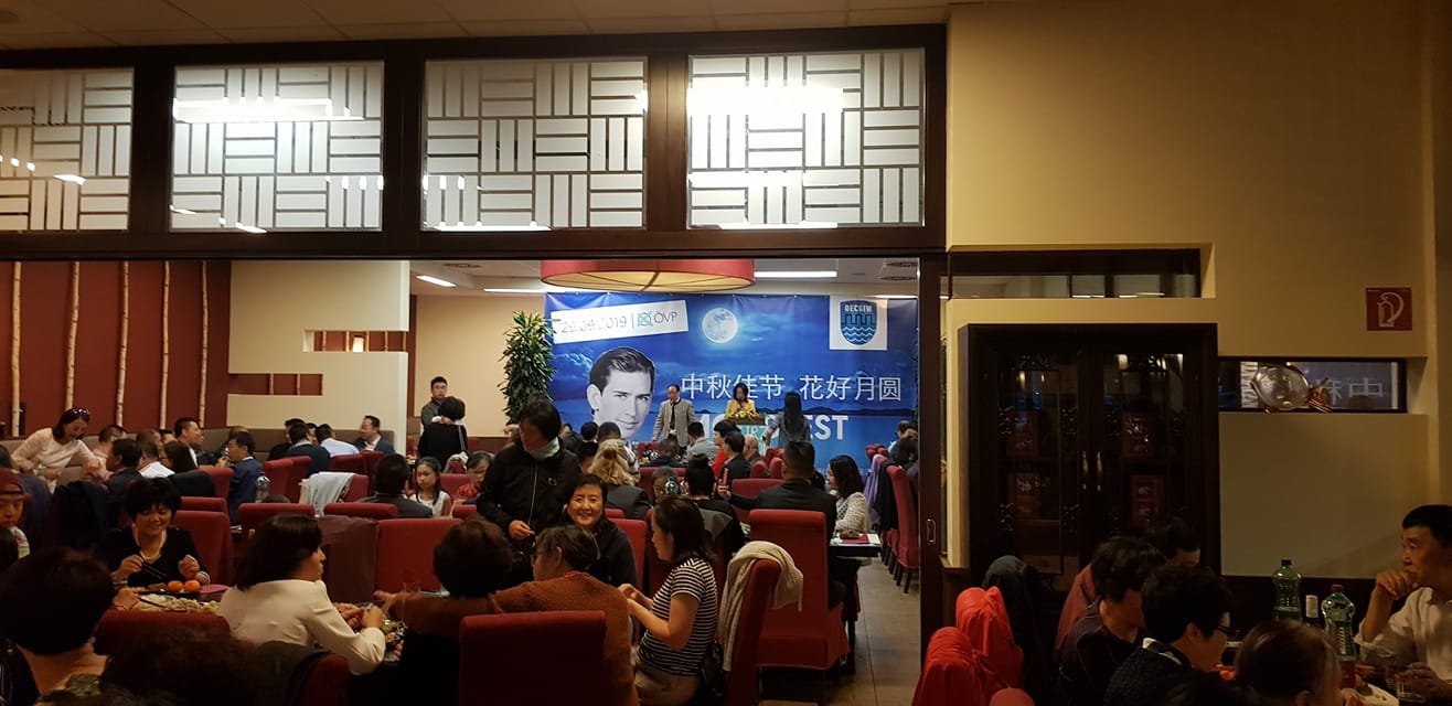 Das oben gezeigte Bild ist keine Fotomontage! Es zeigt eine zufällig dokumentierte Veranstaltung von Karonline Edtstadler (ÖVP) am 9.September im asiatischen Restaurant „Ebi“ in Wien. Aus gutem Grund dürfte der Termin nicht auf ihrer Facebook-Seite angekündigt worden sein. Denn dort trafen sich etliche finanzstarke, chinesische Geschäftsleute um die Austro-Chinesische Wählergruppe auf den ÖVP-Kurs einzuschwören. Oder aber die Austro-Chinesische Community schwor die ÖVP auf den Chinesischen Kurs ein. Dies ist leider nicht nachvollziehbar, schließlich war auf der ganzen Veranstaltung kein deutsches Wort zu vernehmen – mit einer einzigen Ausnahme: Der Rede von Karonline Edtstadler. Dies allein mag noch kein Indiz dafür sein, dass die ÖVP sich auf dem selben autoritären Kurs wie die KP Chinas befände. Doch weitere Treffen legen dies nahe.